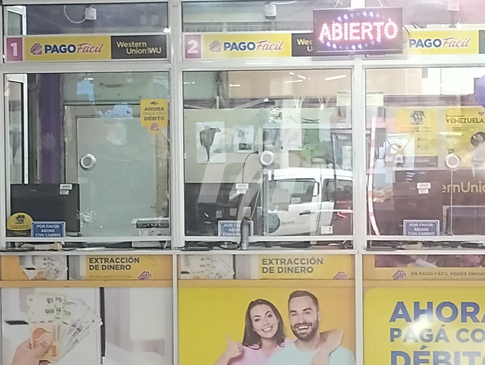 Alrededor de las 9, el dúo de ladrones ingresó al reconocido negocio que dispone de los servicios de «Pago Fácil», y mediante amenazas con armas de fuego exigieron el dinero a los trabajadores del lugar. A pesar de la presencia de los clientes, los malvivientes dispararon contra el mostrador, impactando contra uno de los vidrios de seguridad, y luego volvieron a gatillar y herir al propietario del comercio en la zona de la pierna.