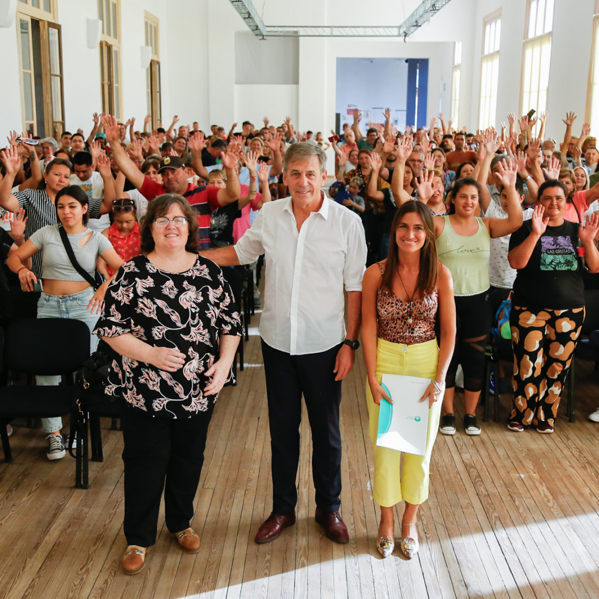 “Fue un trabajo muy arduo, porque detrás de cada escritura hay un proceso muy largo que incluyó recorrer cada barrio, buscar los antecedentes y trabajar con escribanos y agrimensores”, expresó el intendente a los presentes que colmaron el auditorio Ariel Ramírez del Centro de Convenciones ubicado sobre el bulevar.
