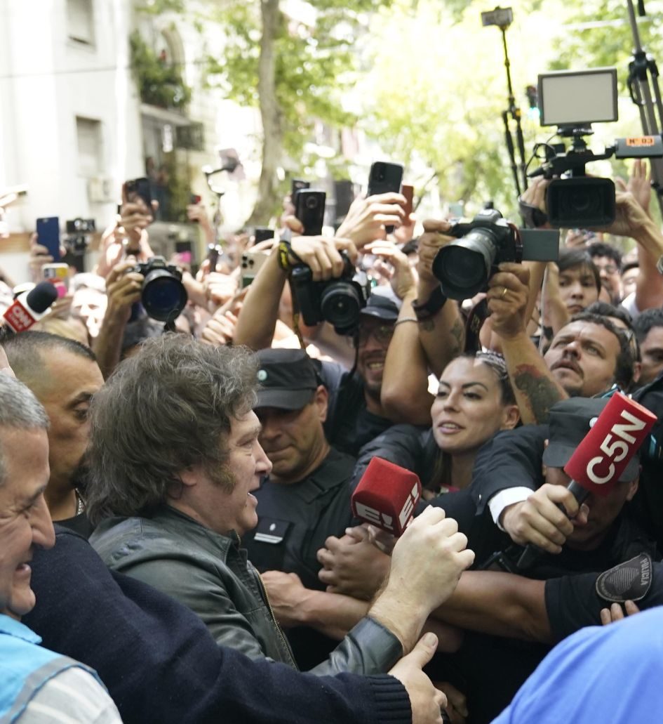 El candidato presidencial de La Libertad Avanza (LLA) y diputado, Javier Milei, emitió su voto a pasada las 12.30 en la UTN sede Medrano. «Estamos muy tranquilos, hemos hecho todo el esfuerzo que podíamos hacer, ahora que hablen las urnas», expresó a su salida del cuarto oscuro, rodeado de una multitud que asistió a saludarlo.
