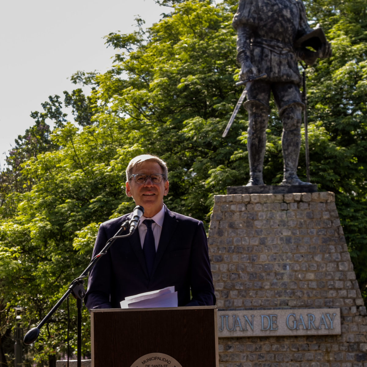 Este jueves por la mañana, el intendente Emilio Jatón encabezó la ceremonia oficial por el 450° aniversario de la ciudad de Santa Fe. El acto se realizó en el Paseo de las Tres Culturas, en calle San Martín entre 3 de Febrero y Entre Ríos, donde se ubica el monumento a Juan de Garay. Como es habitual la ceremonia incluyó la colocación de una ofrenda floral bajo el busto de Garay, la entonación de las estrofas del Himno Nacional y el izamiento de la Bandera Nacional.