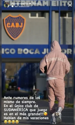 “Ante los rumores de los mismos de siempre, en el único club de Sudamérica que juego es en el más grande. Hablen de mis vacaciones”, publicó el delantero en una historia en su perfil en la que dejó en claro que solo vestiría la camiseta de Boca en el continente.