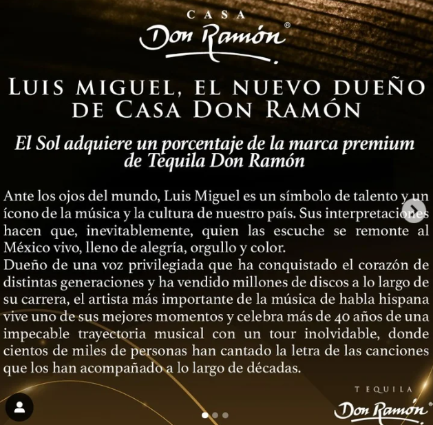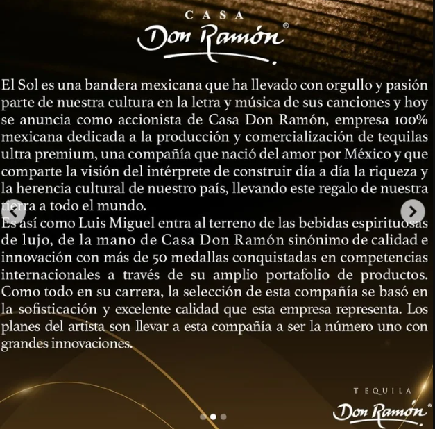 Es así como Luis Miguel entra al terreno de las bebidas espirituosas de lujo, de la mano de Casa Don Ramón sinónimo de calidad e innovación con más de 50 medallas conquistadas en competencias internacionales a través de su amplio portafolio de productos.