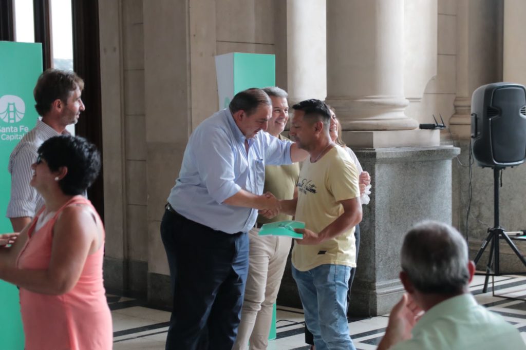 Juan Pablo Poletti entregó 132 escrituras a familias que residen en más de 20 barrios del noroeste, oeste y del suroeste de la capital provincial. El acto tuvo lugar en la Estación Belgrano, con la presencia del titular de la Agencia Santa Fe Hábitat, Eduardo Rudi, el director de Coordinación Ejecutiva de Gestión de Gabinete, Víctor Hadad, representantes del Colegio de Agrimensores, concejales, vecinos y vecinas de la ciudad.