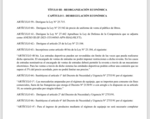 En medio del enorme paquete de medidas para desregular la economía que el Gobierno de Javier Milei envió al Congreso de la Nación apareció algo que sorprendió -entre otras cosas- a más de uno vinculado al deporte: se trata de la propuesta para legalizar le reventa de entradas en eventos deportivos. Una horas después de que el propio presidente volviera a referirse a las Sociedades Anónimas Deportivas, ahora se conoce esta idea.