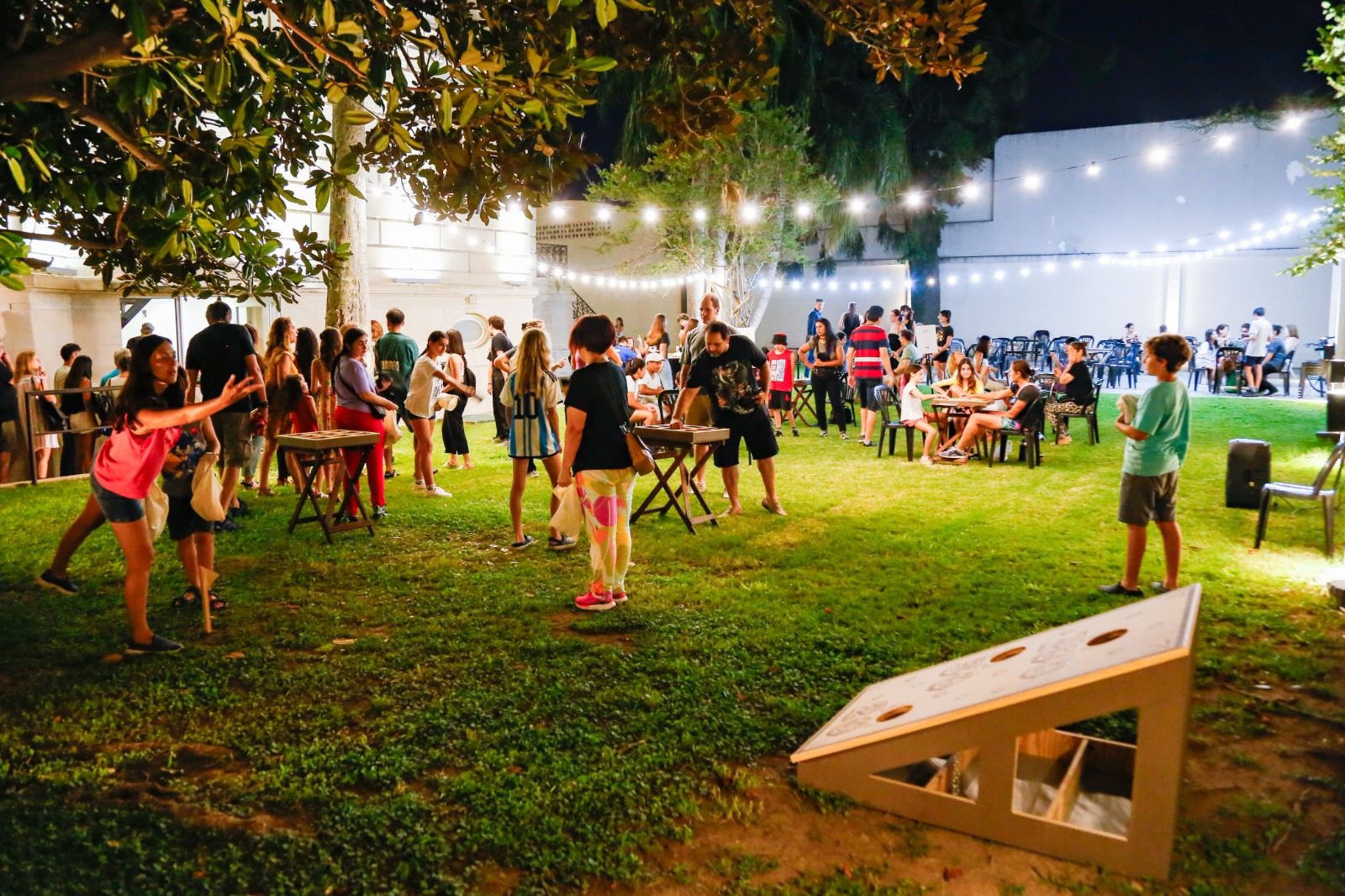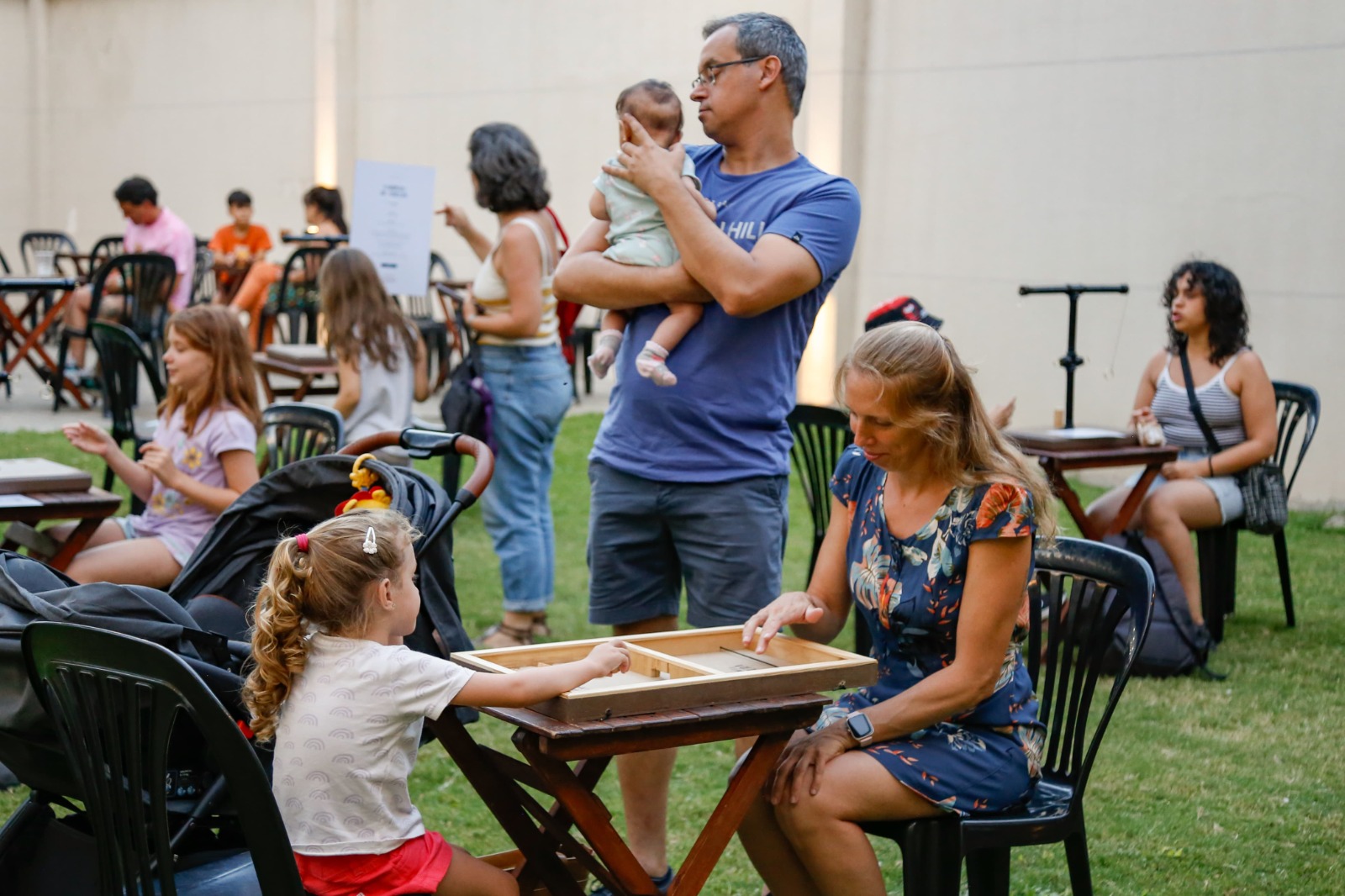 El patio de La Casa se convirtió en una plaza de juegos donde la comunidad disfrutó al aire libre de la nueva propuesta lúdica: los clásicos juegos 4 en línea, tatetí, piedra, papel y tijera y mini tejo de mesa, entre otros.