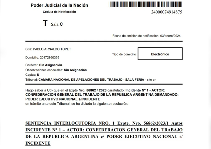 La decisión judicial hace lugar a un planteo de la Confederación General del Trabajo (CGT) y considera que no se habría configurado la situación de “extrema urgencia” requerida para que el Poder Ejecutivo pueda legislar sobre temas que son potestad del Congreso Nacional.