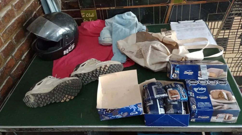 Es así que decidieron volver al domicilio del aprehendido. Allí secuestraron un casco negro con su visera, prendas de vestir, un par de zapatillas, una bolsa marrón claro y tres cajas de helado.