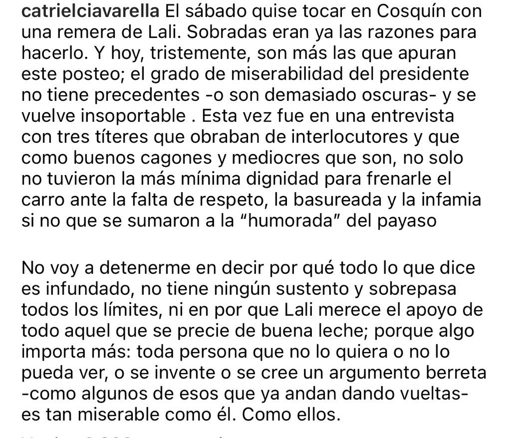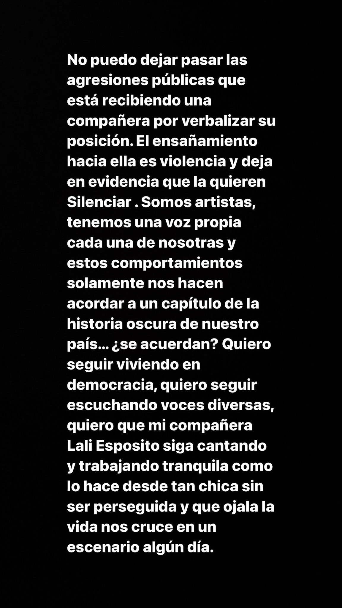 Apoyamos a nuestra compañera @lalioficial ante el hostigamiento de parte del Presidente. La violencia institucional hacia representantes culturales y referentes sociales busca silenciar las voces que se alzan contra la misoginia, el hambre y el ajuste. No nos van a callar!#Lali pic.twitter.com/cnNAVIJvJo