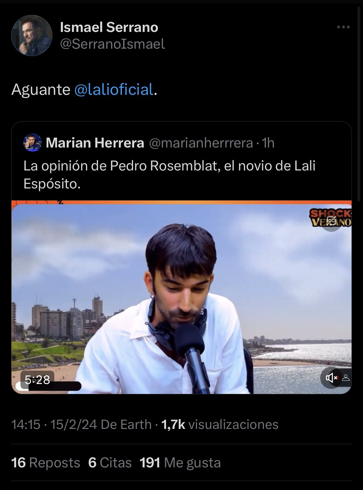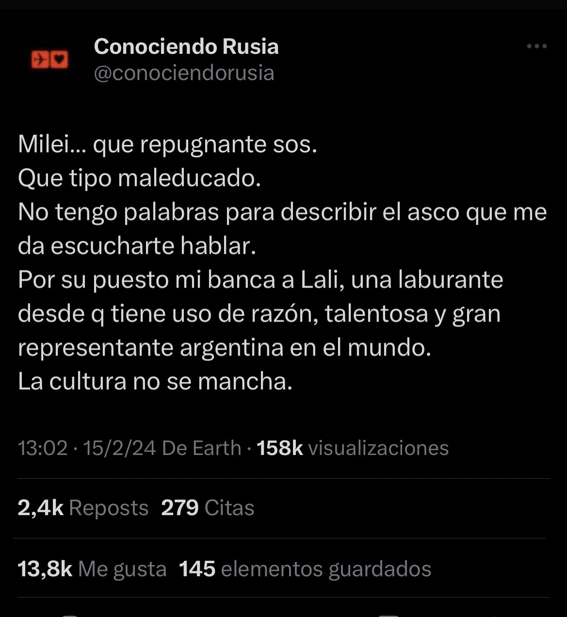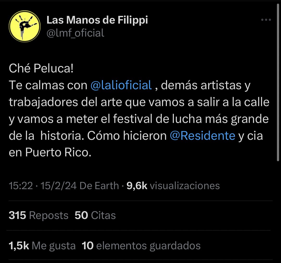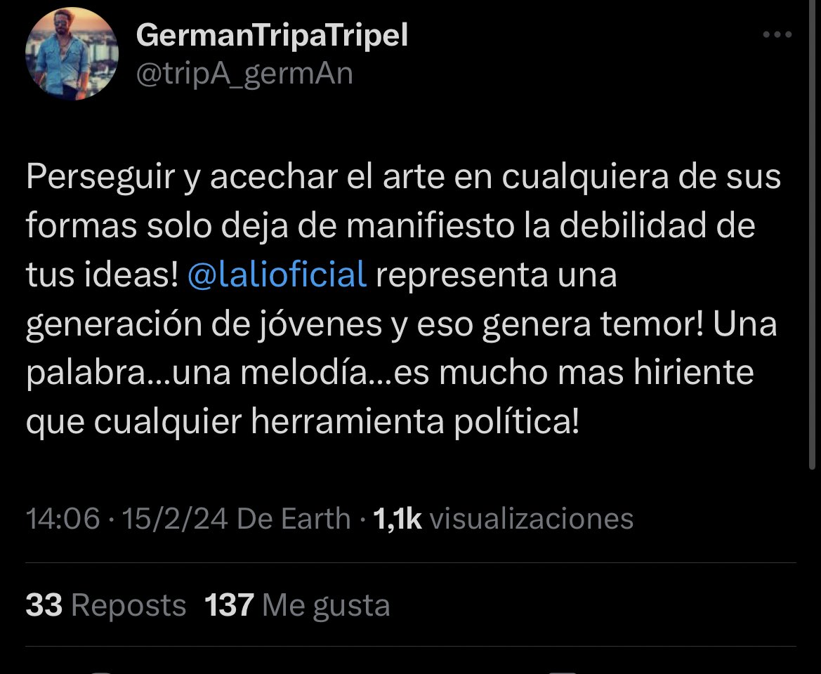 Luego de la frase, que se suma a una catarata de tuits que Milei dedicó a la artista, vinieron los apoyos a Lali. Aquí una lista de quienes decidieron manifestarse: