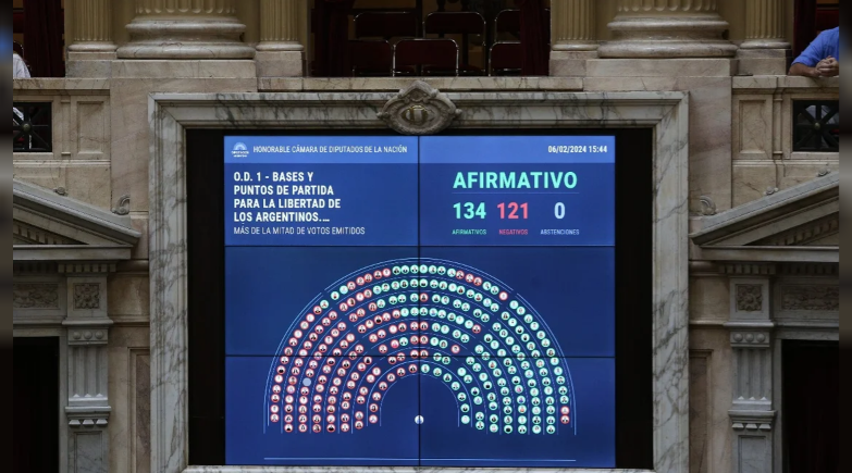 Este martes la Cámara de Diputados retomó la sesión en la que se realizará la votación en particular de la Ley Ómnibus, luego del cuarto intermedio solicitado el viernes pasado. El mega proyecto viene de tener luz verde en general con 144 votos positivos, 109 negativos y 0 abstenciones.