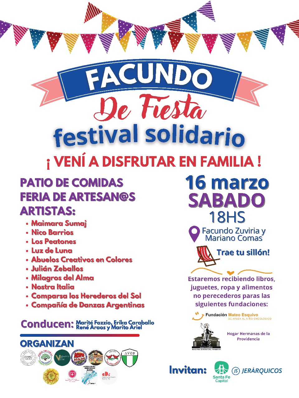Este sábado 16 de marzo, desde las 18hs., se llevará a cabo en la ciudad de Santa Fe «Facundo de Fiesta». Se trata de un festival solidario para disfrutar en familia. El mismo se desarrollará en la esquina de Facundo Zuviria y Mariano Comas.