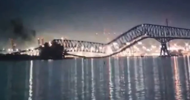 Se trata del puente Francis Scott Key, ubicado en Baltimore. Fue impactado por un barco portacontenedores y se derrumbó en cuestión de segundos. No se reportaban víctimas fatales.