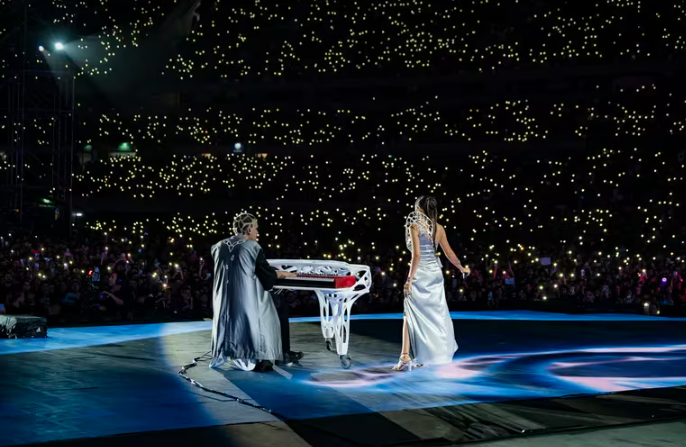El sábado a la noche, María Becerra se presentó en el estadio Mas Monumental de River Plate ante un público que aguardaba impaciente su presencia. Después de un primer show durante el día anterior en el que la Nena de Argentina demostró que se convirtió en una de las voces más importantes de la música nacional, volvió a irrumpir en el escenario con un espectáculo que lo dio todo. La cantante apareció vestida con un abrigo largo y brillante que terminó sacándose para revelar un atuendo amarillo estridente al costado de los rayos de un sol naciente, similar al de la bandera nacional.