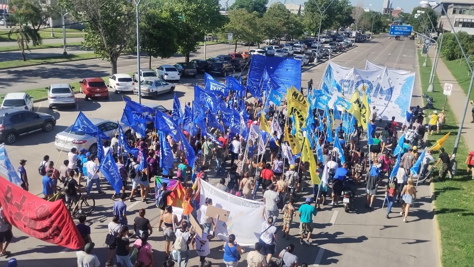 La Corriente Clasista Combativa (CCC) en la ciudad de Santa Fe se sumó a la Jornada Nacional de Lucha en Argentina contra el ajuste del gobierno nacional. El acto central con corte total fue desde las 10.30 en la puerta del CDR Nacional en 27 de Febrero y Salta (sede regional del Ministerio de Capital Humano). Previamente, la movilización había comenzado 9:45hs. desde plaza Colón.