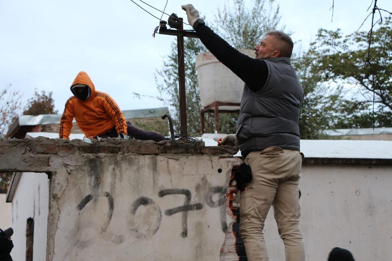 El ministro de Justicia y Seguridad provincial, Pablo Cococcioni, junto al fiscal Matías Merlo, estuvo presente esta mañana en el derribo de tres puestos de venta de estupefacientes en zona noroeste de la ciudad de Rosario, en el marco de la Ley de Microtráfico.