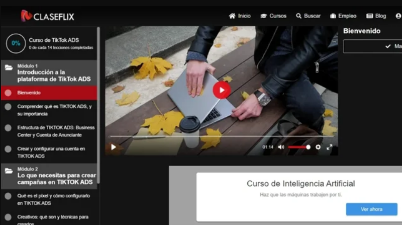 Claseflix es una plataforma de contenidos educativos donde hay cientos de cursos diferentes.