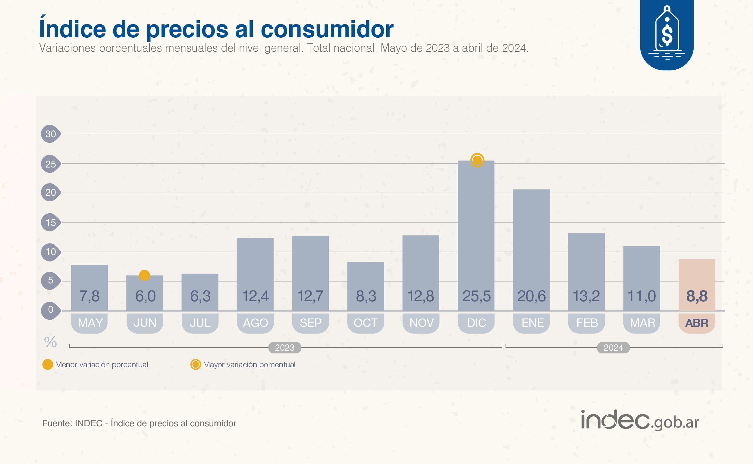 La inflación finalmente bajó a un dígito y fue de 8,8% en abril