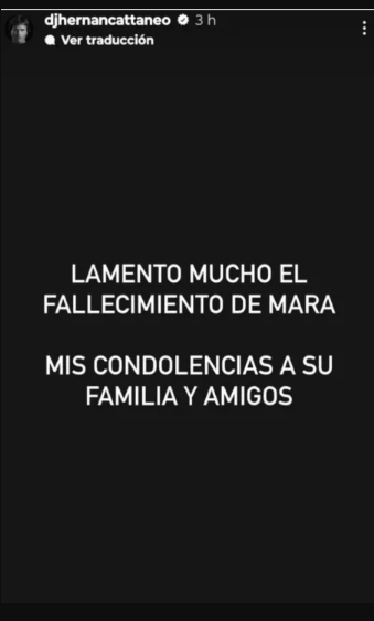 “Lamento mucho el fallecimiento de Mara. Mis condolencias a su familia y amigos”, posteó el DJ ante sus más de 500 mil seguidores.