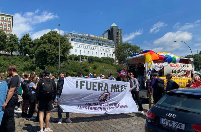 Protestas en el recibimiento a Javier Milei en Hamburgo