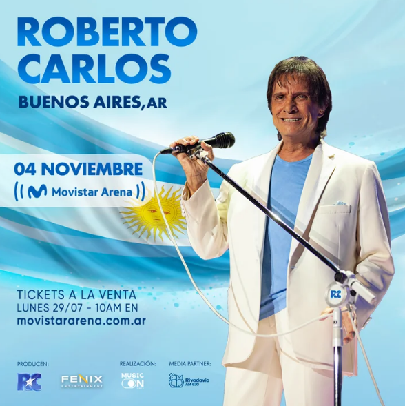 La voz, el talento y toda la emoción de Roberto Carlos llegan una vez más a la Argentina. Uno de los artistas más queridos e importantes del mundo, ganador de incontables galardones, incluido los emblemáticos premios Grammy, anunció su esperado show en Argentina, en el marco de su gira por Sudamérica donde ya realizó inolvidables presentaciones en Chile (Movistar arena y en el Gran Arena Monticello) y en Uruguay (Antel Arena).