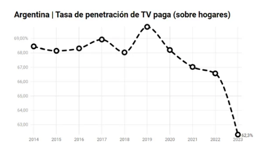 El avance es incesante, en contraste con el retroceso de la TV por cable, cuya la tasa de penetración es la más baja de la última década, con un total de 9.1 millones de accesos, lo que representó una penetración de 62.3% de suscriptores sobre hogares, más de cuatro puntos menos que un año atrás.