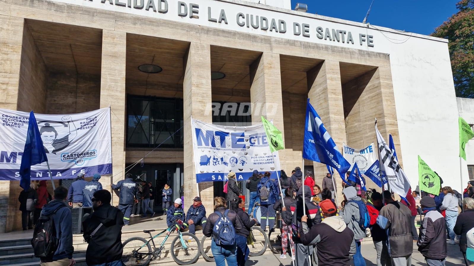 El Movimiento Trabajadores Excluidos (MTE) se movilizó este martes por la mañana desde la Plaza del Soldado hasta la Municipalidad de Santa Fe para reclamar por la falta de respuesta a sus pedidos.