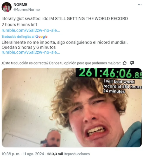 Polémica viral: el youtuber Norme realizó un desafío por el que estuvo 12 días sin dormir