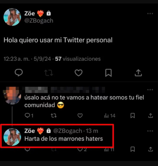 La ex participante de Gran Hermano Zoe Bogach utilizó una cuenta privada para emitir una opinión, sin pensar que se podía filtrar y generar un fuerte rechazo.