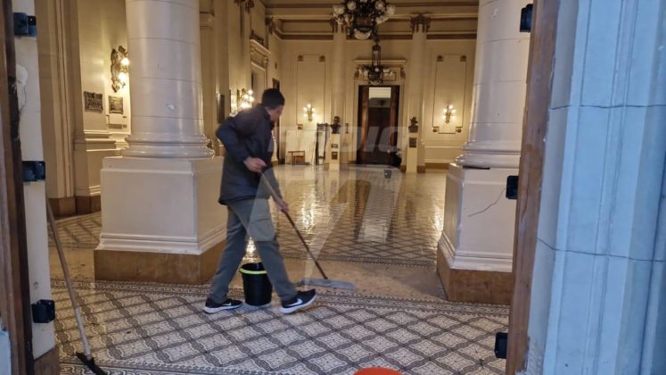 Tras los disturbios y incidentes ocurridos en la Legislatura Santafesina durante la sesión que aprobó la Reforma Jubilatoria, este viernes continúan las tareas de limpieza en el edificio.