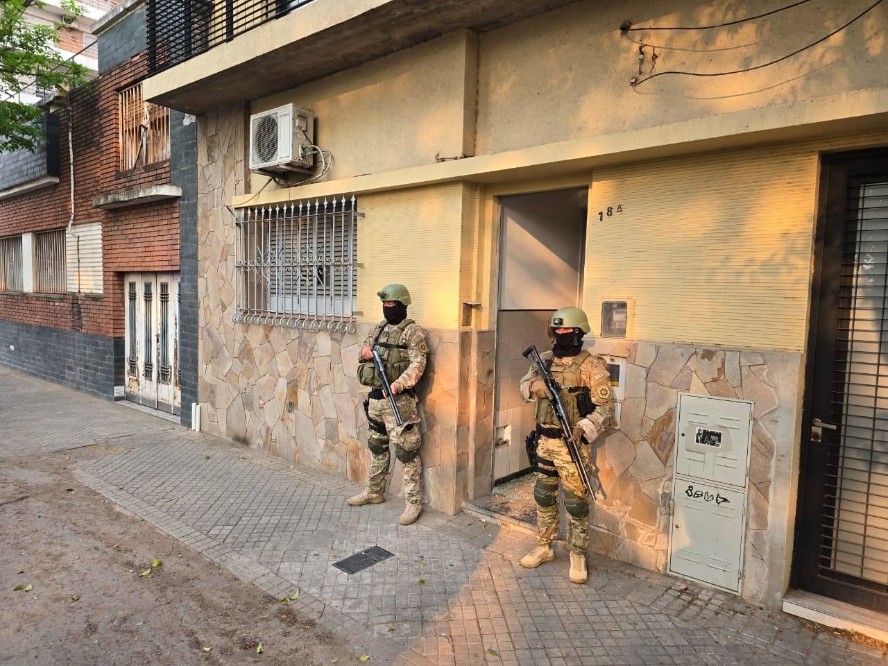 Los allanamientos se llevaron adelante en Derqui al 7600, México al 1500 bis, Ercilia al 200 bis, Forest al 7500, Teniente Agneta al 100, Biedma al 700, Donado al 900, Pasaje Collan al 6000, Presidente Quintana al 1500, Liniers al 4200, Ayacucho al 4800 y 4400, Colombres al 1600, Pascual Rosas al 1700, Médici al 4500 y 4600 de la ciudad de Rosario; y en El Aguaribay al 6100 (dos domicilios), El Chañar al 6100 (dos domicilios), y Timbó y El Aguaribay.