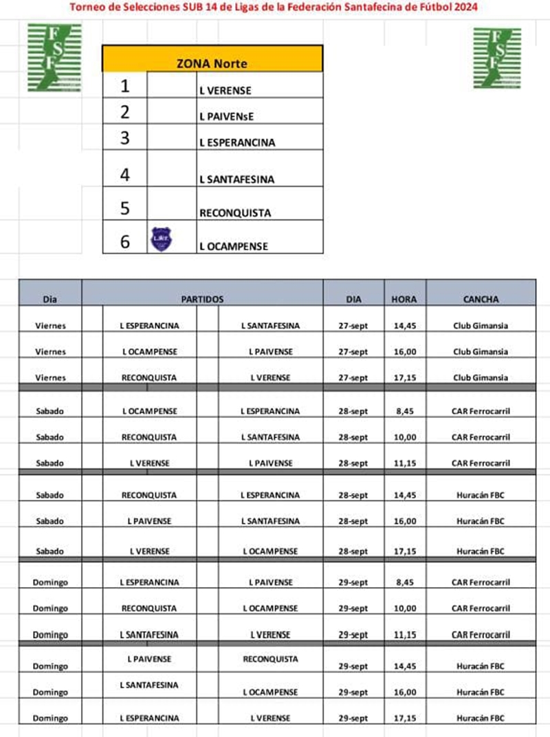 Las 5 delegaciones de la Ligas que jugarán junto a la verense son: Santafesina, Ocampense, Reconquistense, Esperancina y Paivense.
