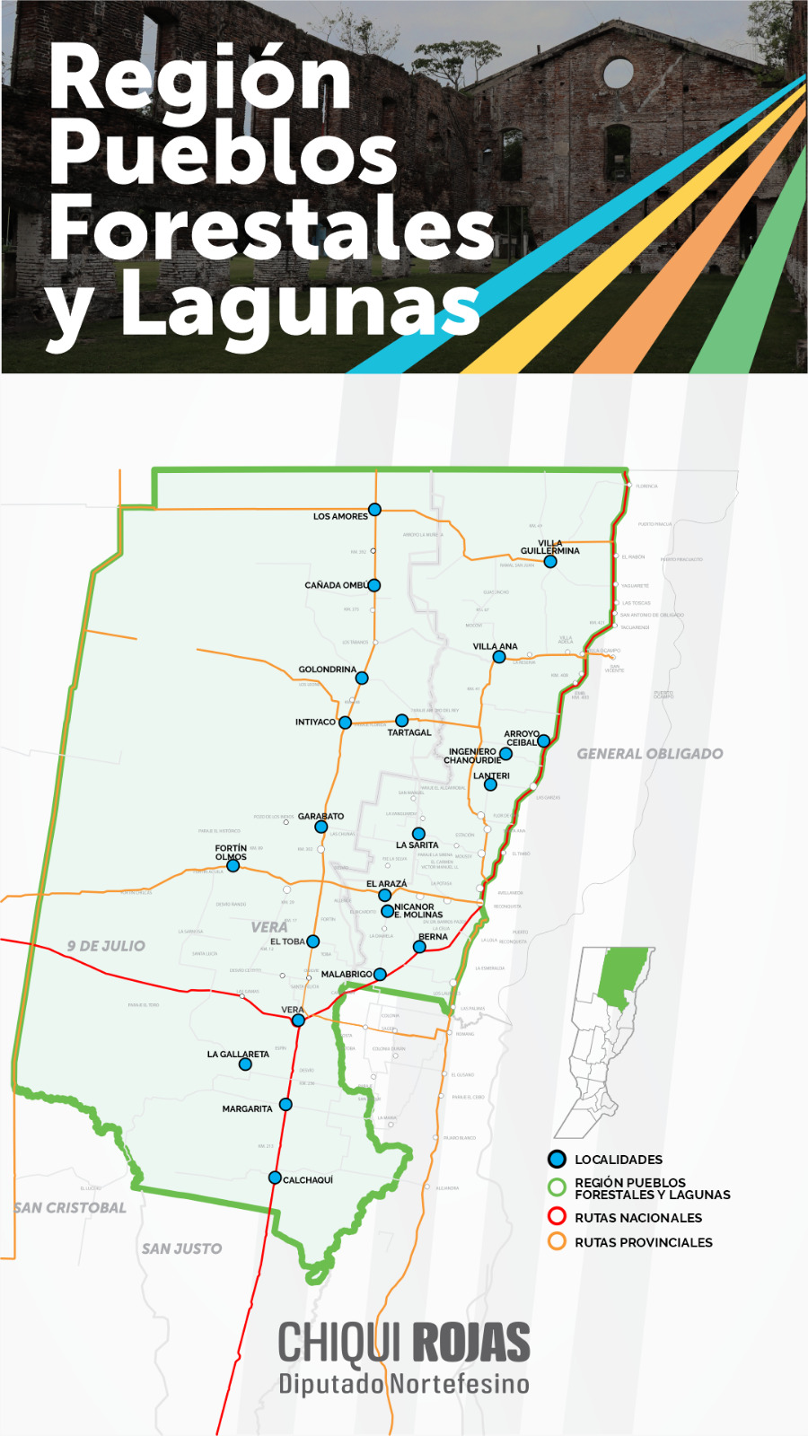 El diputado provincial Sergio “Chiqui” Rojas presentó un proyecto de ley que busca promover el turismo histórico cultural en los pueblos forestales del norte santafesino. “El turismo representa una oportunidad de desarrollo muy importante para nuestra región. La historia de La Forestal merece ser contada y recreada a través del patrimonio histórico, cultural y arquitectónico que ha quedado en los diferentes pueblos del norte, de una manera que permita a sus habitantes a comenzar, por fin, a aprovechar de los recursos naturales de la región para generar un desarrollo sostenible», indicó.