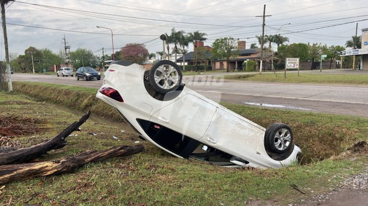 Un automóvil protagonizó este martes por la mañana un impactante accidente en la localidad de Monte Vera, al volcarse y terminar dentro de un zanjón en la Ruta Provincial 2, frente al Club San Martín.