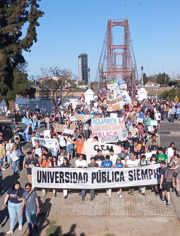Este miércoles 2 de octubre, Santa Fe se suma a la Marcha Federal Universitaria. Desde las 16 horas, estudiantes, docentes y no docentes iniciaron dos marchas. Una partió desde Ciudad Universitaria, mientras que la otra salió 17:30hs. del Rectorado de la UNL. Ambas movilizaciones convergerán en El Molino, donde se llevará a cabo un acto central.
