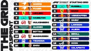 La actividad concluyó con la pole position obtenida por Lando Norris, de McLaren, seguido por George Russell (Mercedes), Oscar Piastri (McLaren), y las Ferrari de Carlos Sainz y Charles Leclerc. El flamante tetracampeón del Mundo, Max Verstappen, quedó sexto.