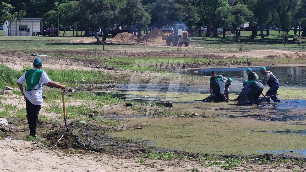 Los trabajos incluyen la remoción de maleza y la recuperación de la arena en la zona del Parque del Sur. Además, se están recuperando las bombas para oxigenar el agua, aunque el lago no está autorizado para uso como balneario.