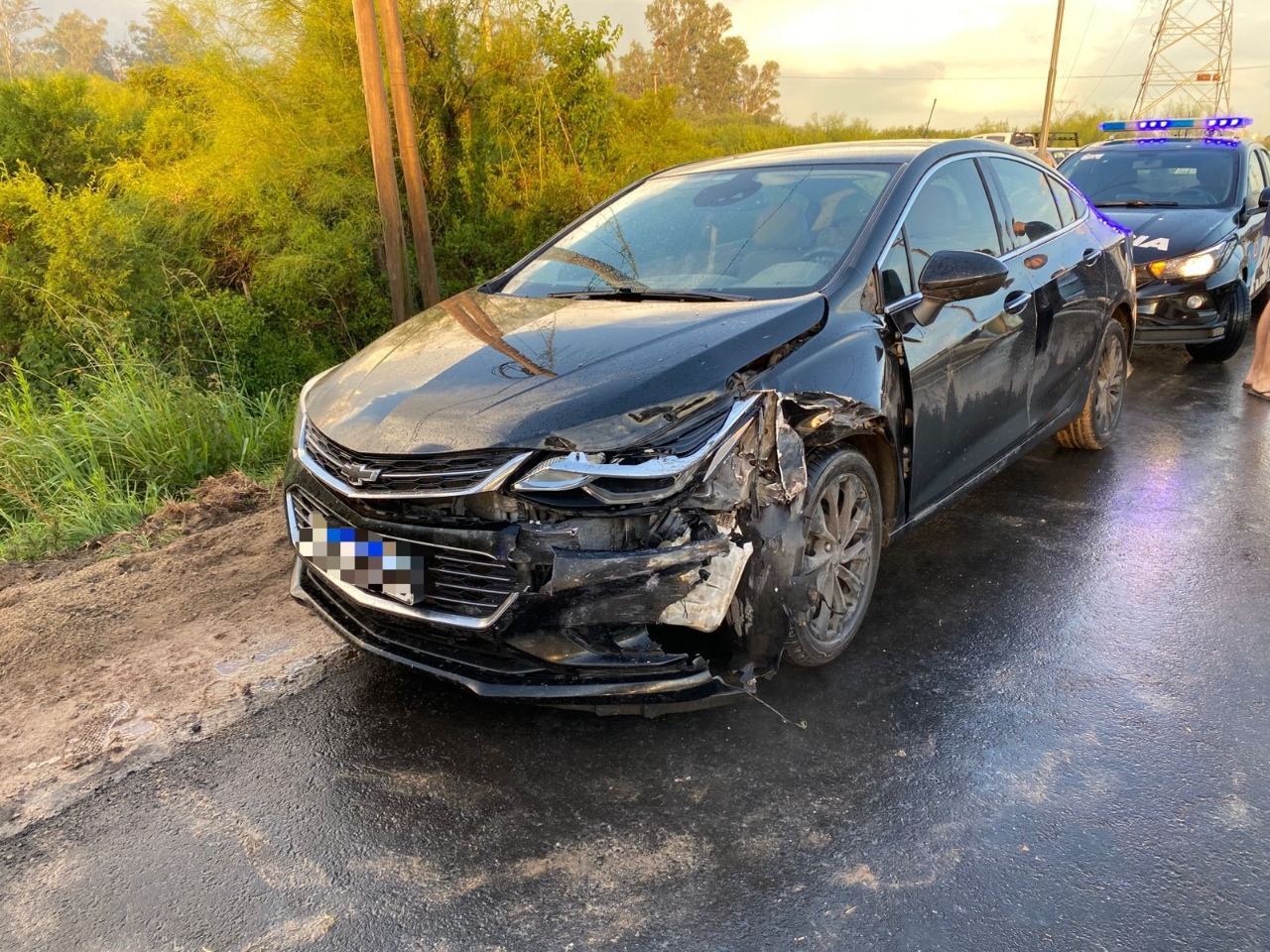 El siniestro vial ocurrió cuando un vehículo que circulaba en dirección sur-norte fue impactado por otro auto que venía en la mano contraria. El impacto desplazó al primer coche hacia la banquina, en dirección a la vía.