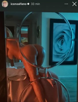 A sus 71 años, Alfano mostró su figura desnuda de espaldas frente a un espejo. En la foto, lucía sin ropa en la parte superior y con ropa interior en la parte inferior.
