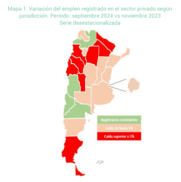 Un grupo muy reducido logró aumentar la cantidad de puestos de trabajo entre noviembre 2023 y septiembre 2024: Mendoza, Salta, Río Negro y Neuquén.