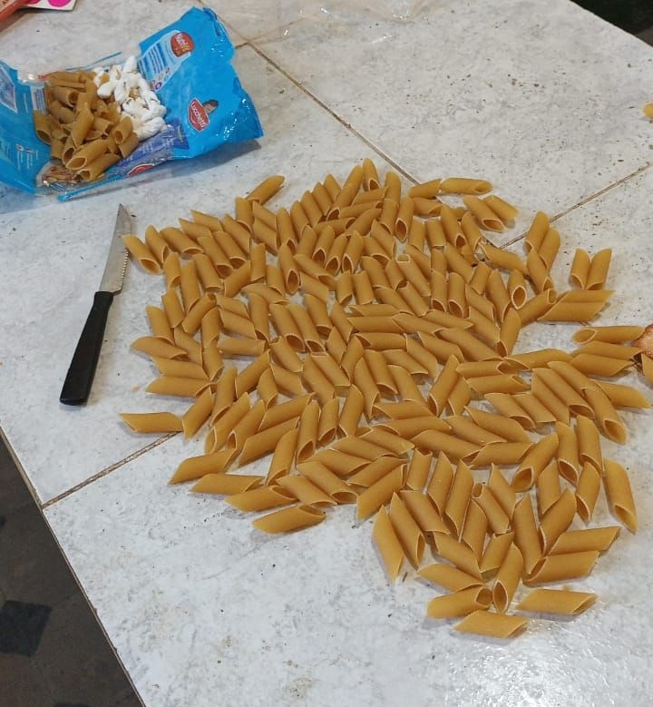 Los agentes penitenciarios suelen hallar material estupefaciente entre las plantillas y las suelas de las zapatillas, en pañales descartables, en fideos tipo mostacholes (foto), en biscochos y prepizzas (foto) y hasta en masitas tipo pepas.