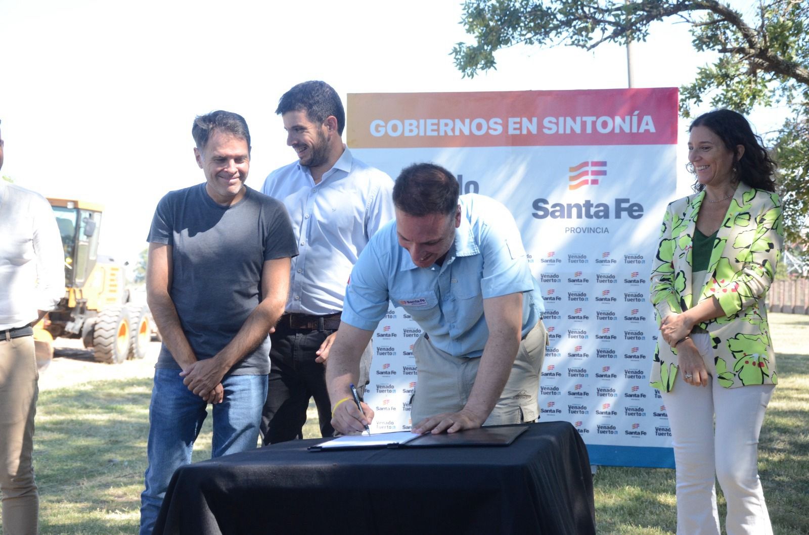 El ministro de Obras Públicas de la Provincia, Lisandro Enrico, junto al intendente de Venado Tuerto, Lionel Chiarella, firmaron este viernes el acta de inicio de la obra de la Avenida Circunvalación de Venado Tuerto, entre la Ruta Nacional Nº 8 y la Ruta Nacional Nº 33.