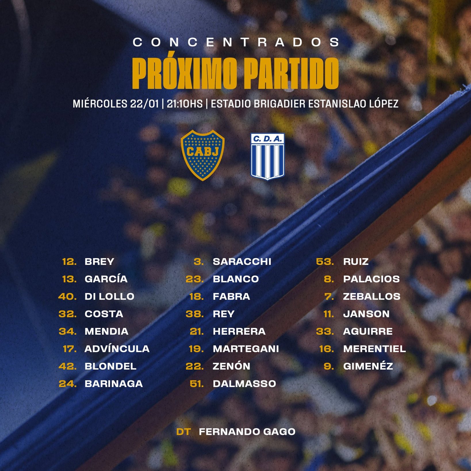 En cuanto a las incorporaciones de Boca en este mercado, entre los 23 figuran Ayrton Costa, el español Ander Herrera y el chileno Carlos Palacios. No están Alan Velasco y Rodrigo Battaglia que recién se sumaron hoy al plantel xeneize tras firmar sus contratos con la institución azul y oro.