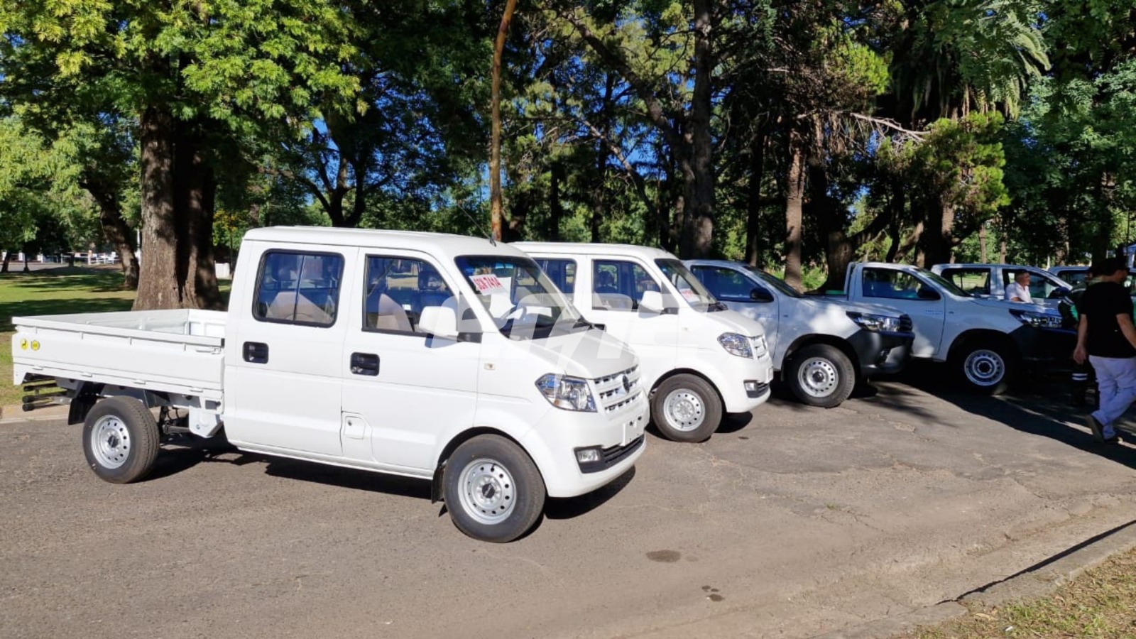 En este caso se trata de 5 camionetas: una 4×4 doble cabina para la secretaría de Desarrollo Urbano y Gestión Hídrica, otras dos 4×2 también doble cabina destinadas al sistema de Respuestas Rápidas, y dos 4×2 simple cabina para las áreas de Deporte y las Delegaciones. A la lista se suman 2 mini trucks para cumplir tareas en Espacios Verdes; 2 retroexcavadoras para Intervenciones Urbanas, y para Higiene Ambiental; 1 motoniveladora para realizar trabajos también desde el ámbito de Intervenciones Urbanas; 8 camiones volcadores que se repartirán entre Higiene Ambiental (5), Intervenciones Urbanas (2) y Espacios Verdes (1); y se completa con 2 camiones con equipo de riego y 1 acoplado trailer que se destinarán a Intervenciones Urbanas.