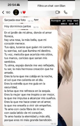 En la captura, L-Gante le envía un poema cargado de amor. Comienza con: “En el jardín de mi alma, donde el amor florece”.