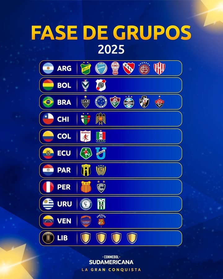La historia de la confirmación de los grupos se sabrá el próximo 17 de marzo en la sede de la entidad, en Luque. El ranking de Conmebol estableció la conformación de los bombos y los cabezas de serie: Atlético Mineiro, Fluminense, Gremio, Independiente, Cruzeiro, Lanús, Defensa y Justicia y América de Cali. Los cuatro eliminados (se jugaron los partidos de ida) en la fase previa de la Libertadores pasarán automáticamente al bombo 4.