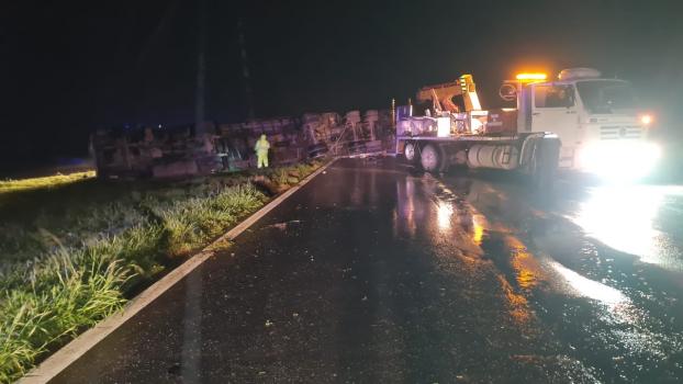 Un camión que se dirigía por la Autopista Santa Fe-Rosario hacia el sur despistó y volcó, cortando totalmente el tránsito a la altura de Monje y con desvíos a la ruta 11.