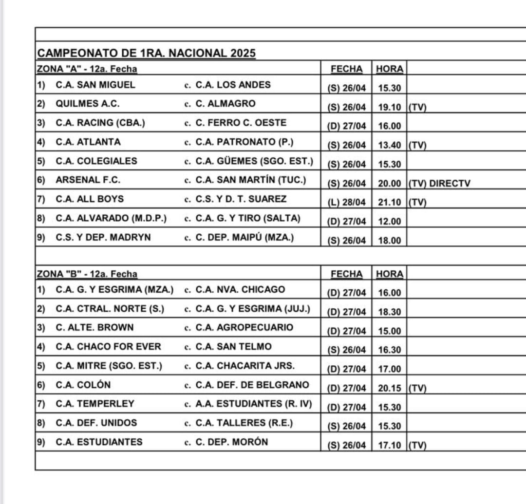 Colón y Defensores de Belgrano juegan en Santa Fe por la fecha 12 de la Primera Nacional 2025. El partido se jugará este domingo 27 de abril finalmente desde las 20:15 en el Brigadier López.