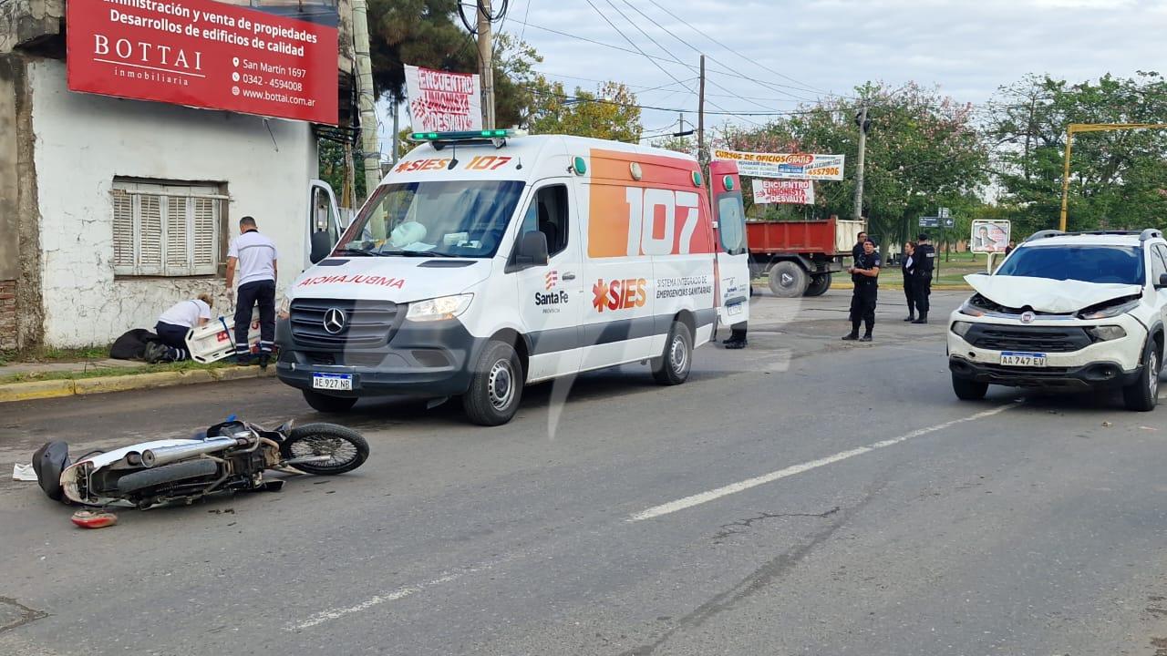 El choque ocurrió en la intersección con Iturraspe. El conductor de una motocicleta fue trasladado al Hospital Cullen con golpes en el cuerpo tras impactar contra una camioneta.