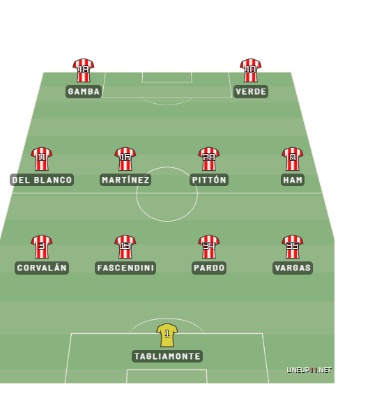 El probable equipo sería con Matías Tagliamonte/ Lautaro Vargas, Franco Pardo, Valentín Fascendini y Claudio Corvalán/ Ezequiel Ham o Franco Fragapane, Mauro Pittón, Mauricio Martínez y Mateo Del Blanco/ Lionel Verde y Lucas Gamba.