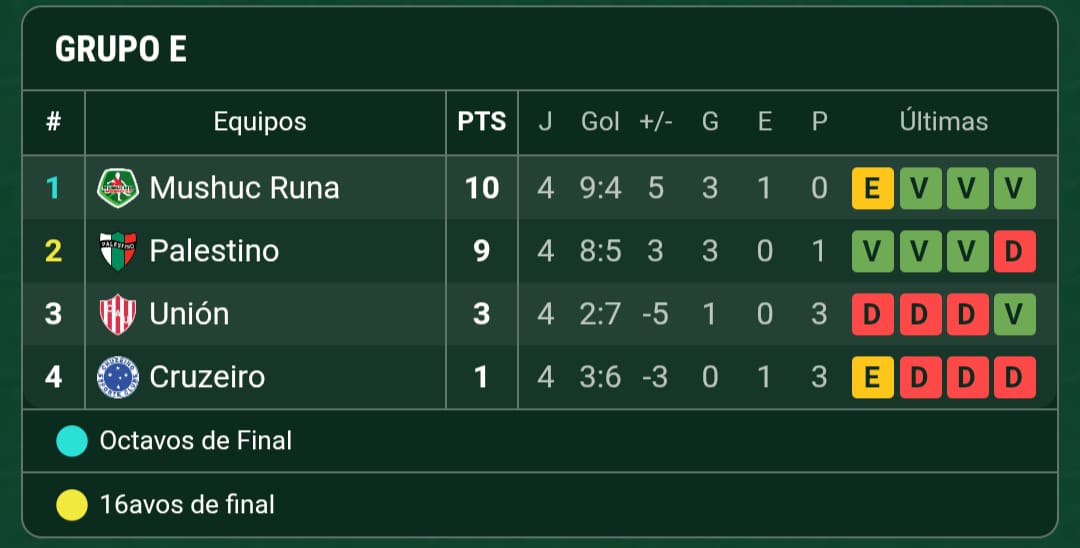 Con un panorama muy complicado para la clasificación, Unión sabe que no depende de sí mismo ya que deberá ganar los dos partidos restantes y esperar que Palestino pierda los dos para definir por mejor diferencia de gol. El equipo árabe que dirige Lucas Bovaglio tiene 9 puntos, 6 más que el Tate y la diferencia es de 8 goles en favor de los chilenos.